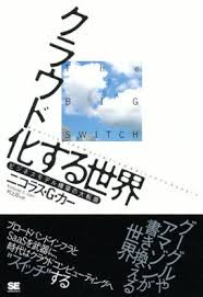 は、Nicholas Carrの『クラウド化する世界』邦訳版(原題“THE BIG SWITCH”)。この二年くらいの間に僕が読んだ本の中で、一番と言っていいくらいにおもしろい一冊だった。「クラウド(=雲)コンピューティング」と呼ばれる現代のコンピュータ社会を、いろんな側面から解き明かした一冊で、無理やり分類すれば、数年前に大ヒットした梅田望夫氏の『ウェブ2.0』と同じジャンルに位置づけられるのかも知れない。ただ、あの本より数倍深い(←正直に言うと僕も、当時は、『ウェブ2.0』に熱狂した)。